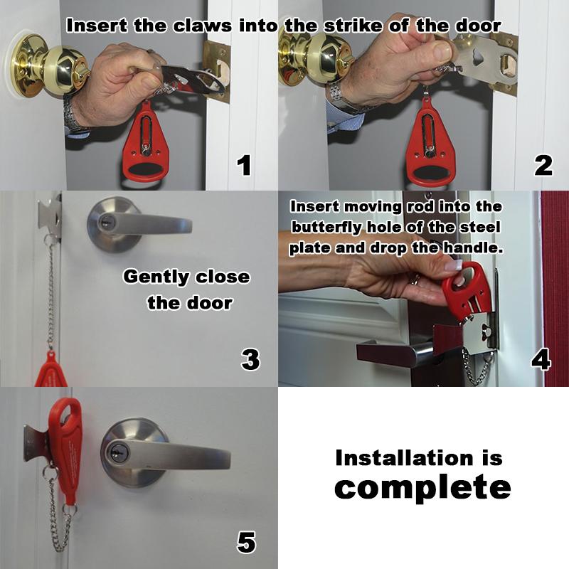 Simple operation and easy to carry. The door can be quickly closed from the inside, even if other people have a key, also can not open the door from the outside, so as to truly ensure your personal and property safety. It can help you in a crisis to block foreign invasion or play a role in delaying time, so as to save themselves.