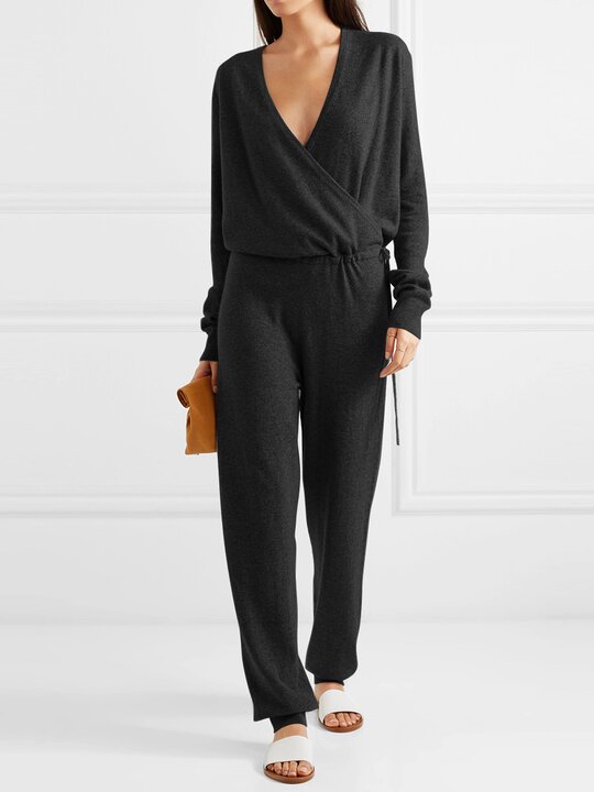 Garment Type: JumpsuitNeckline: V NeckOccasion: DailyPattern Type: SolidSleeve Type: Long SleeveTheme: Spring, Fall, WinterStyle: Casual, SimpleMaterial: Polyester, SpandexPlease Note: All Dimensions Are Measured Manually With A Deviation Of 1 To 3cm.